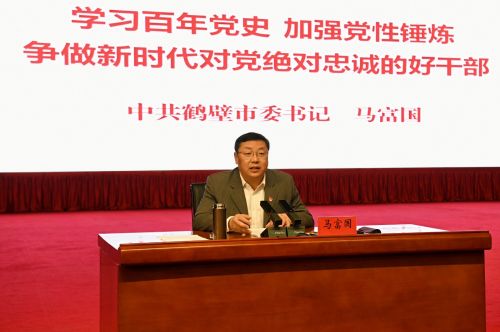 【鹤壁新闻网讯-鹤报融媒体首席记者 张心致/文 记者 张宁/图】根据市委党史学习教育、市政法队伍教育整顿和市委党校春季学期主体班工作安排,3月23日上午,市委书记马富国在市人民会堂,以《学习百年党史、加强党性锤炼,争做新时代对党绝对忠诚的好干部》为题,为全市党员干部上了一堂党课。这也是市委理论学习中心组党史学习教育读书班的一项主要内容。市委副书记、市长郭浩,市委副书记张然,市人大常委会主任史全新,市政协主席李军,市领导路培果、冯芳喜、洪利民、田开胜、刘文彪等参加。