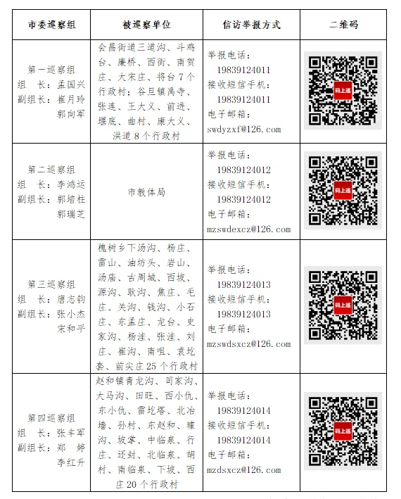 根据孟州市委统一部署,6月12日,市委4个巡察组完成对市教体局和青龙沟等60个行政村的巡察进驻。
