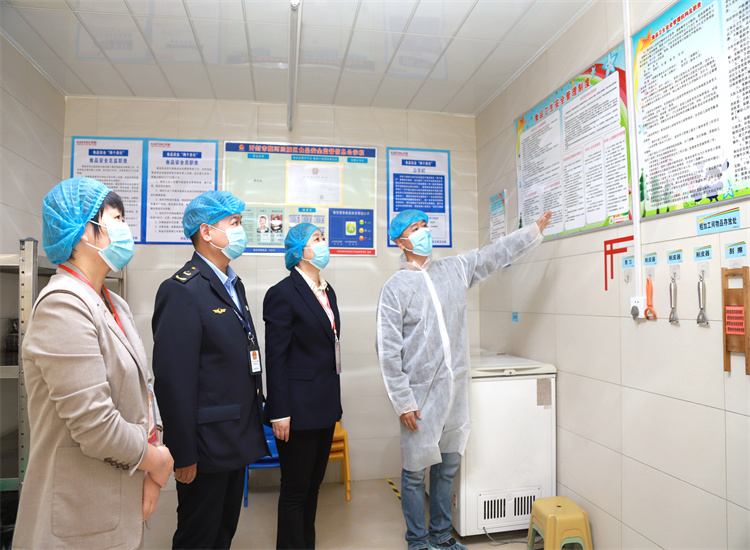 顺河回族区纪委监委充分发挥派驻监督“前哨”作用,联合区市场监督管理局成立专项督查组,重点围绕行政许可、公开招投标、合同签订、饭菜质量及定价、落实食品安全责任情况等方面,进行座谈汇报、现场问询、随机抽查。图为专项督查组到星星幼儿园开展监督检查。 (李若溦 摄)
