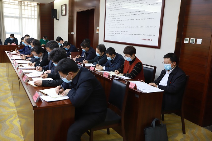 会议指出,全省纪检监察机关要吃透讲话精神,切实增强“两个维护”的自觉性坚定性。总书记在中央党校开讲“新年第一课”,既瞄准“关键课题”,又瞄准“关键少数”,着眼新时代党和国家事业发展全局,从理论和实际、历史和现实、国内和国际相结合的高度,分析了进入新发展阶段的理论依据、历史依据、现实依据,阐述了深入贯彻新发展理念的新要求,阐明了加快构建新发展格局的主攻方向,对于全党进一步统一思想、提高站位、开阔视野,全面贯彻党的十九大和十九届二中、三中、四中、五中全会精神,确保全面建设社会主义现代化国家开好局、起好步,具有重大而深远的指导意义。要把学习贯彻总书记重要讲话精神同学习贯彻总书记关于河南的重要讲话指示批示精神贯通起来,把贯彻落实党的十九届五中全会精神同贯彻落实党的十九届四中全会精神紧密结合起来,始终对“国之大者”做到心中有数,切实用总书记重要讲话精神统一思想和行动,以实实在在的成绩坚定践行“两个维护”。