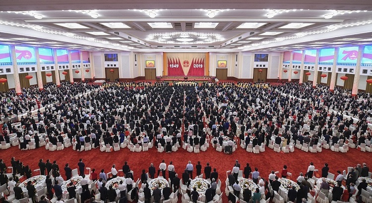 9月30日晚,庆祝中华人民共和国成立70周年招待会在北京人民大会堂隆重举行。新华社记者 张领 摄