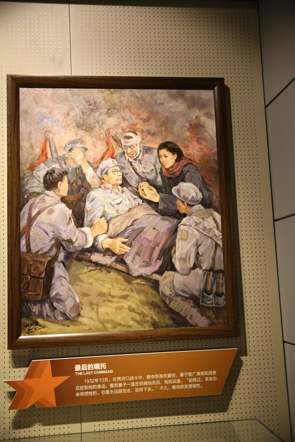这幅油画展示的是英烈蔡申熙牺牲时的情景。