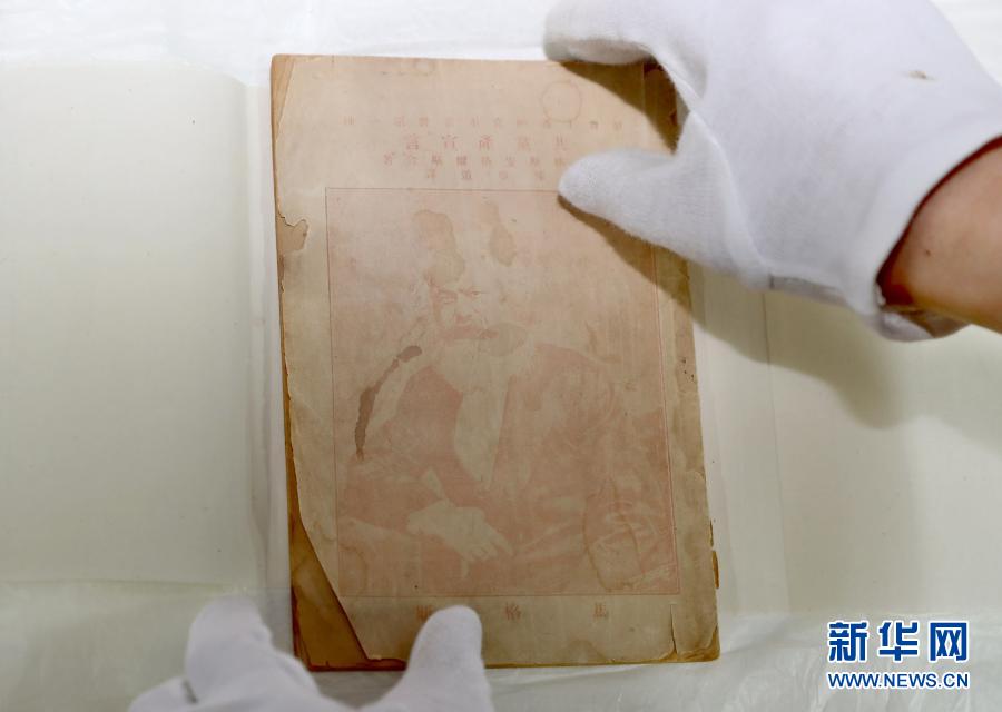 这是中共一大会址纪念馆馆藏的首版红色封面的《共产党宣言》(2020年6月23日摄)。新华社记者 刘颖 摄