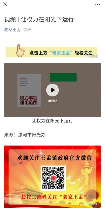 王孟镇利用“老家王孟”公众号推送“阳光村务”宣传视频