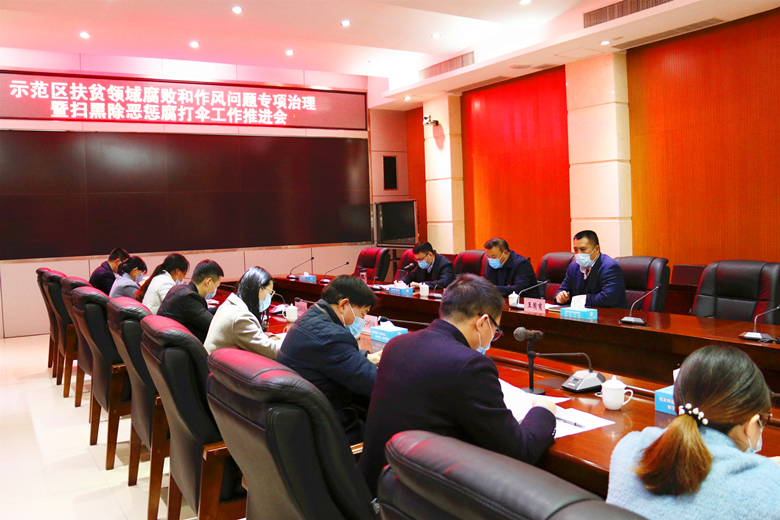 会议传达了市纪委监委有关会议和文件精神,听取了黑龙潭镇、姬石镇纪委书记关于扶贫领域腐败和作风问题专项治理及扫黑除恶惩腐打伞工作的完成情况、存在的问题和下步工作,赵洪亮结合实际工作做了现场点评,并就示范区2020年扶贫领域腐败和作风问题专项治理及扫黑除恶惩腐打伞工作进行安排部署。
