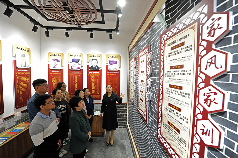 “陈氏家族明清两代有80余人为官,大多勤政廉洁,施惠于民,备受百姓爱戴,这也从侧面说明良好的家风家训对一个家族的发展具有良性促进作用。陈玑担任督察院左都御史到湖南巡察时,当地一个官吏触犯法律,带着钱财跑到陈玑老家向他父亲求情,陈玑的父亲写信嘱咐他不要因金钱所动,要秉公处置,不可枉法……”在源汇区大陈村家风馆中,讲解员正在为前来参观的源汇区纪委监委机关干部们讲述陈氏家族的勤廉家风故事。