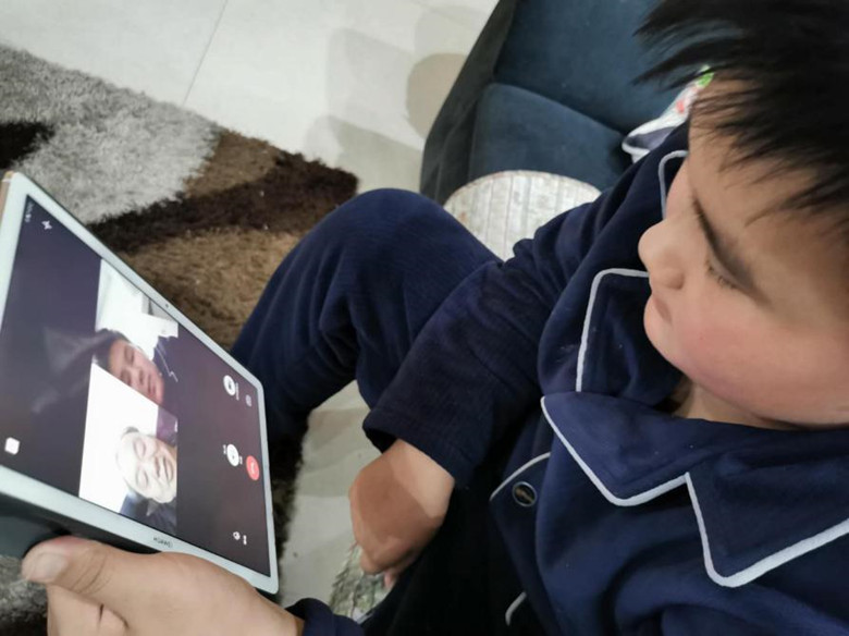 晚上,爸爸妈妈想外孙了,给他们视频聊天。儿子撒娇地问姥爷:“疫情什么时候才能结束啊,我都快想死你们了!”爸爸说道:“快了快了,等到春暖花就全都好起来了。”
