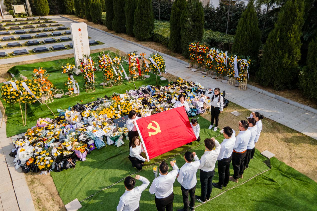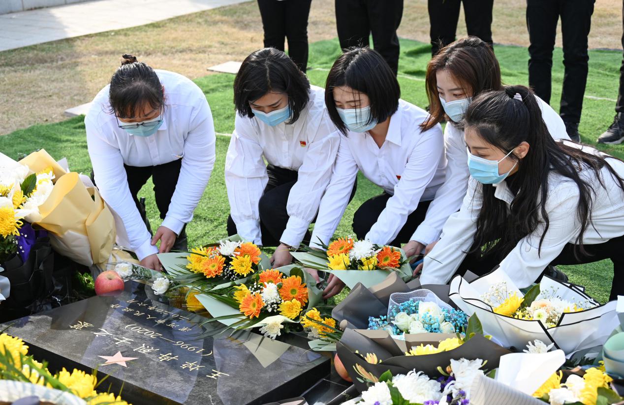纪检监察干部们为烈士王焯冉敬献鲜花
