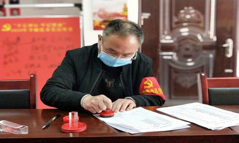 监委会主任韩利明在捐赠防疫物资发放情况统计表审核无误后盖章
