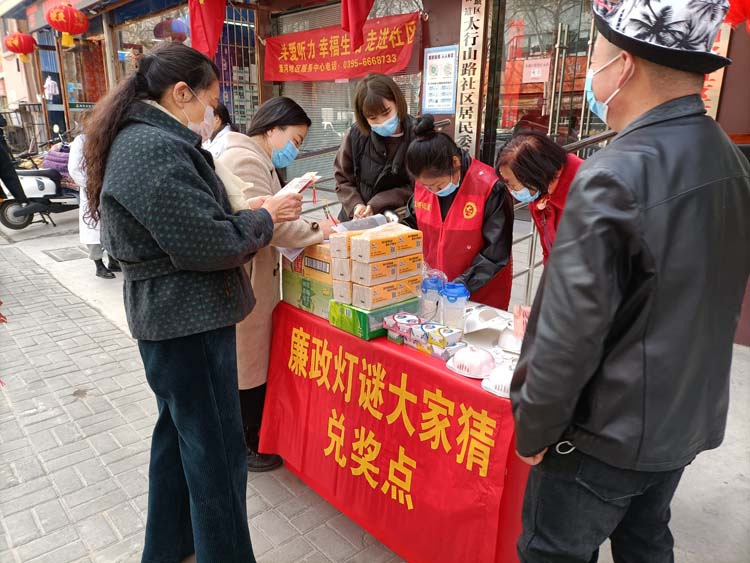 为了弘扬廉政文化、增强廉政意识,营造有温度的廉政文化氛围。在元宵佳节来临之际,郾城区纪委监委联合龙塔街道太行山路社区组织了廉政灯谜有奖竞猜活动。在委机关门前的街道两侧挂满了红灯笼,显得格外喜庆,一条条集知识性与趣味性的廉政灯谜就挂在红灯笼下,吸引了过往的群众驻足围观。灯谜涉及党纪、法规、时政、文化等,内容丰富,寓教于乐。