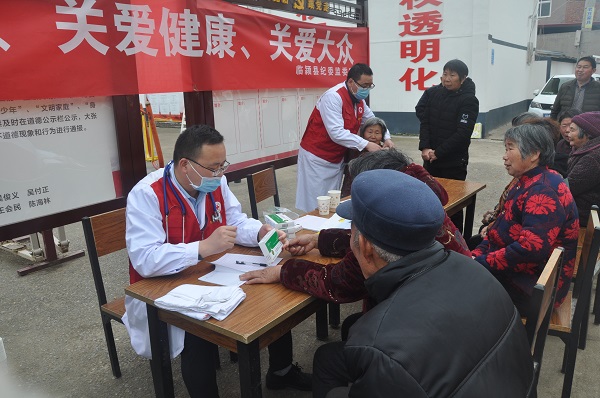 义诊现场,医生详细询问前来就诊群众病情,耐心细致地为村民听诊、测量、检查,解答村民们咨询的健康疾病问题,并进行用药指导,面对面宣传卫生健康常识、常见病预防,向村民讲解新冠肺炎个人防护措施等。同时,对行动不便的村民提供上门送医服务,并为村民发放骨痛一可贴、香砂养胃丸等常用药品和医用口罩。