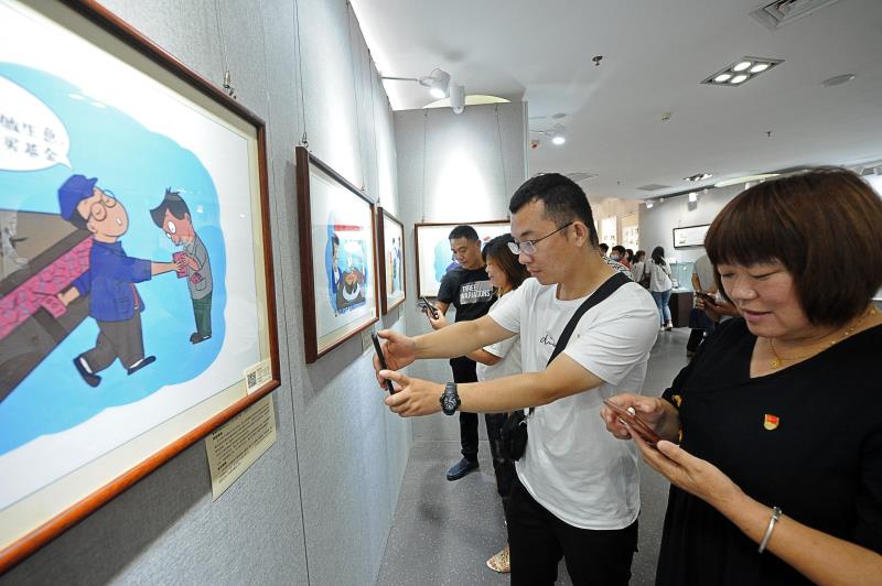 此外,本次廉政艺术作品展融入新媒体元素,在每幅反映扶贫领域基层微腐败典型案例的漫画作品下面设置一个二维码,观众可通过手机扫描二维码获取案例介绍,一键实现“自助学案例”。“自己扫码就能在手机上看到真实的案例介绍,还有音频讲解,这种方式很灵活,尤其是音频讲解让案例的警示性更强了。”参观展览的该区机关干部李少洋表示。