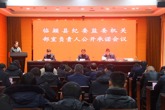 为进一步高树工作目标,不断提高履职尽责水平,推动新的一年纪检监察工作高质量发展,2月18日,临颍县纪委监委组织开展部室负责人公开承诺活动。17个部室负责人轮流上台,结合中央、省、市纪委全会精神,根据部室职责,向班子成员和全体机关干部作出公开承诺。承诺内容包括2019年工作打算、创新性工作谋划、自身业务学习等方面。每名部室负责人公开承诺完成后,由其分管常委进行点评。