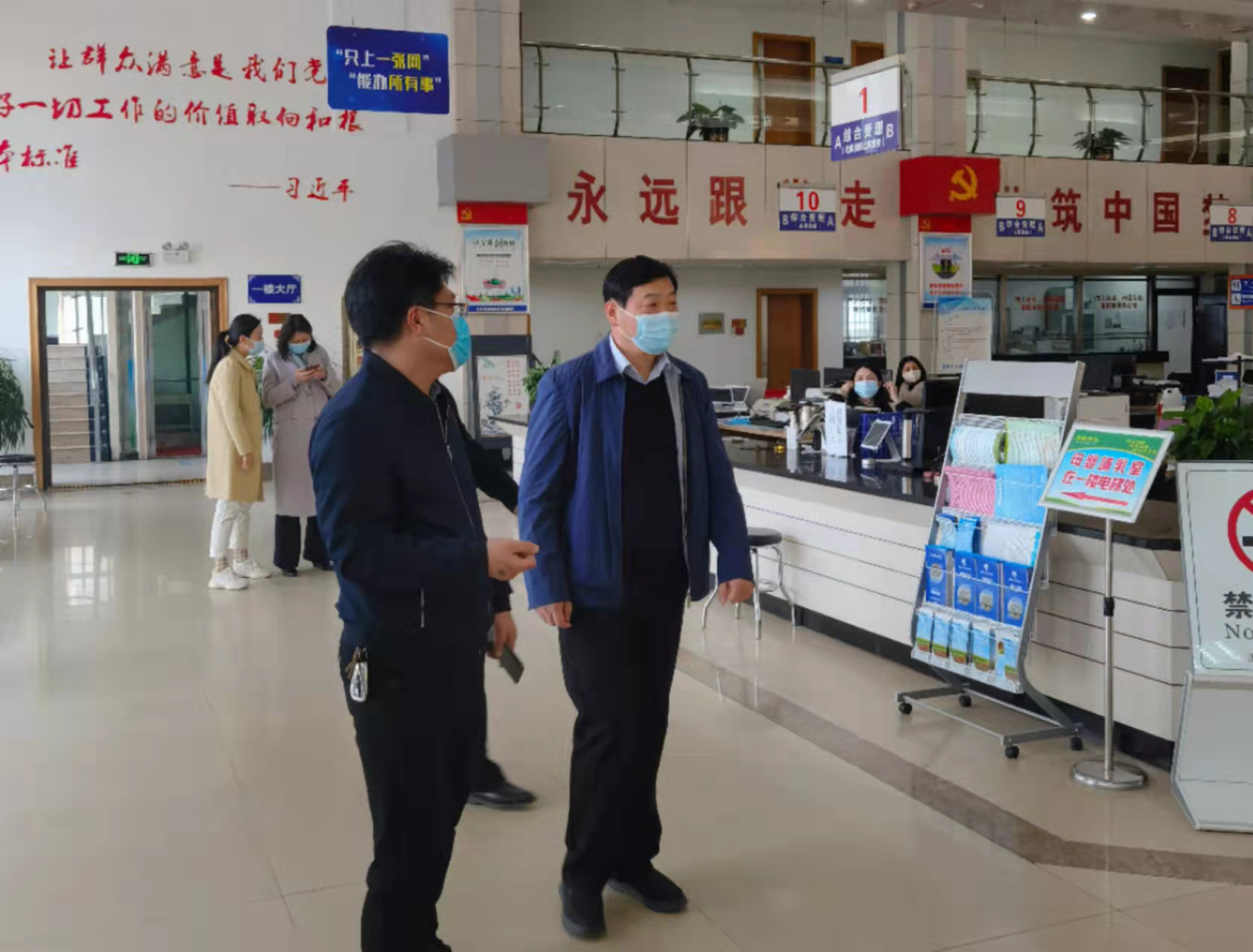 “疫情发生前,你单位进驻大厅的有几个窗口,一共几个人?实体大厅暂停线下服务,你单位负责的窗口每天安排几个人在大厅值班?每天办理事项多少件?”“对有办理时限要求的,行政服务中心如何保障?”市纪委监委派驻第七纪检监察组先后来到市行政服务中心嵩山路大厅、黄山路大厅,听取疫情期间政务服务“网上办”平台保障及工作开展介绍,详细询问大厅值守人员受理群众网上事项办理情况,并就统筹抓好疫情防控与服务群众提出要求。