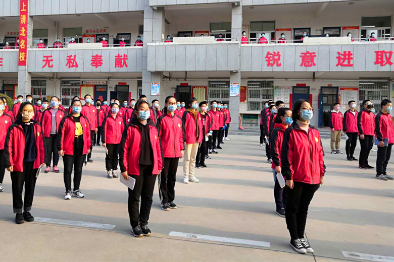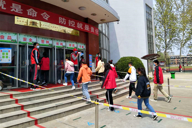 告别“超级寒假”,4月7日,漯河市15300余名高三学子迎来了“特殊时期”的别样开学。按照间隔1.5米的要求排队等候体温检测、行李消毒,有序返校复学复课。
