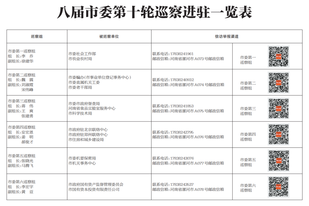 据悉,本轮巡察为期45天左右。为便于干部群众反映情况,市委巡察组开通了信访电话,设置了征求意见箱、专用邮政信箱和“码上巡”二维码,主要受理被巡察单位党组织领导班子及其成员,内设科室、二级机构主要负责人和重要岗位领导干部的来信来电来访,重点是违反政治纪律、组织纪律、廉洁纪律、群众纪律、工作纪律和生活纪律等方面的举报和反映。受理信访时间截止到2025年9月28日18:00。