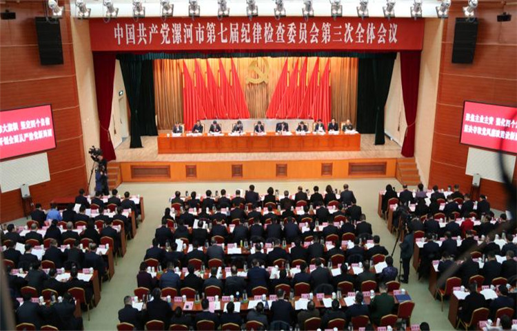2月12日,中国共产党漯河市第七届纪律检查委员会第三次全体会议召开。市委书记蒿慧杰出席会议并讲话。他强调,要以习近平新时代中国特色社会主义思想为指导,全面贯彻落实党的十九大精神,深入学习贯彻十九届中央纪委二次全会精神特别是习近平总书记重要讲话精神,贯彻落实十届省纪委三次全会精神,以永远在路上的坚韧和执着,把全面从严治党引向深入,为决胜全面建成小康社会、开启新时代漯河全面建设社会主义现代化国家新征程提供坚强保证。