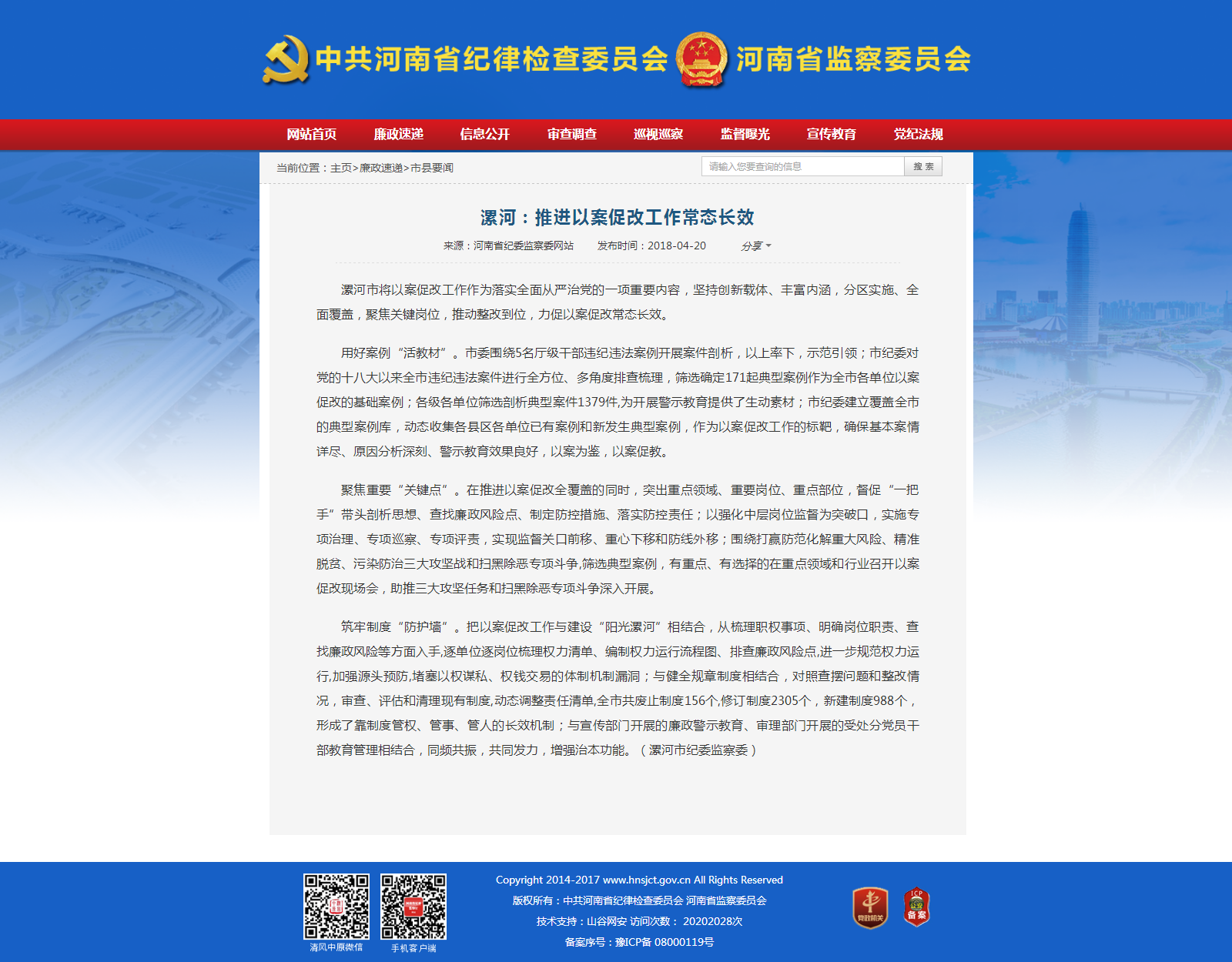 漯河市将以案促改工作作为落实全面从严治党的一项重要内容,坚持创新载体、丰富内涵,分区实施、全面覆盖,聚焦关键岗位,推动整改到位,力促以案促改常态长效。