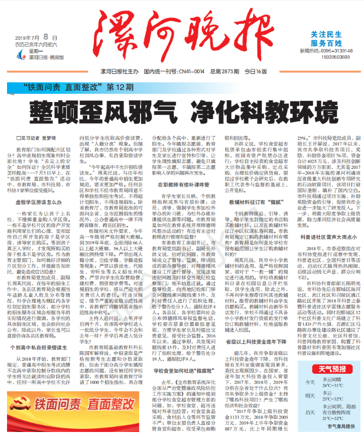 教育部门如何调配片区划分?高中违规招生现象何时全面杜绝?学生“舌尖上的安全”如何保证?全民科学素质怎样提高……7月5日早上,在“铁面问责 直面整改”活动中,市教育局、市科技局、市科协3家单位接受提问。