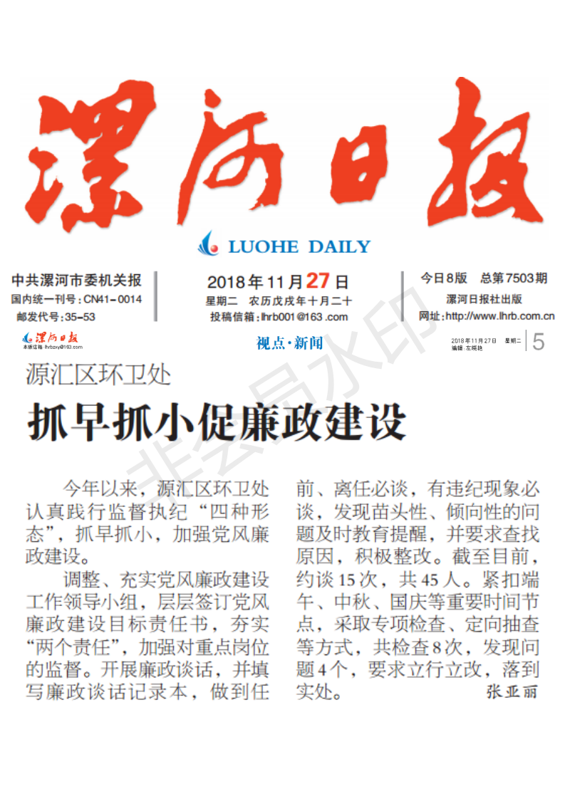 今年以来,源汇区环卫处认真践行监督执纪“四种形态”,抓早抓小,加强党风廉政建设。
