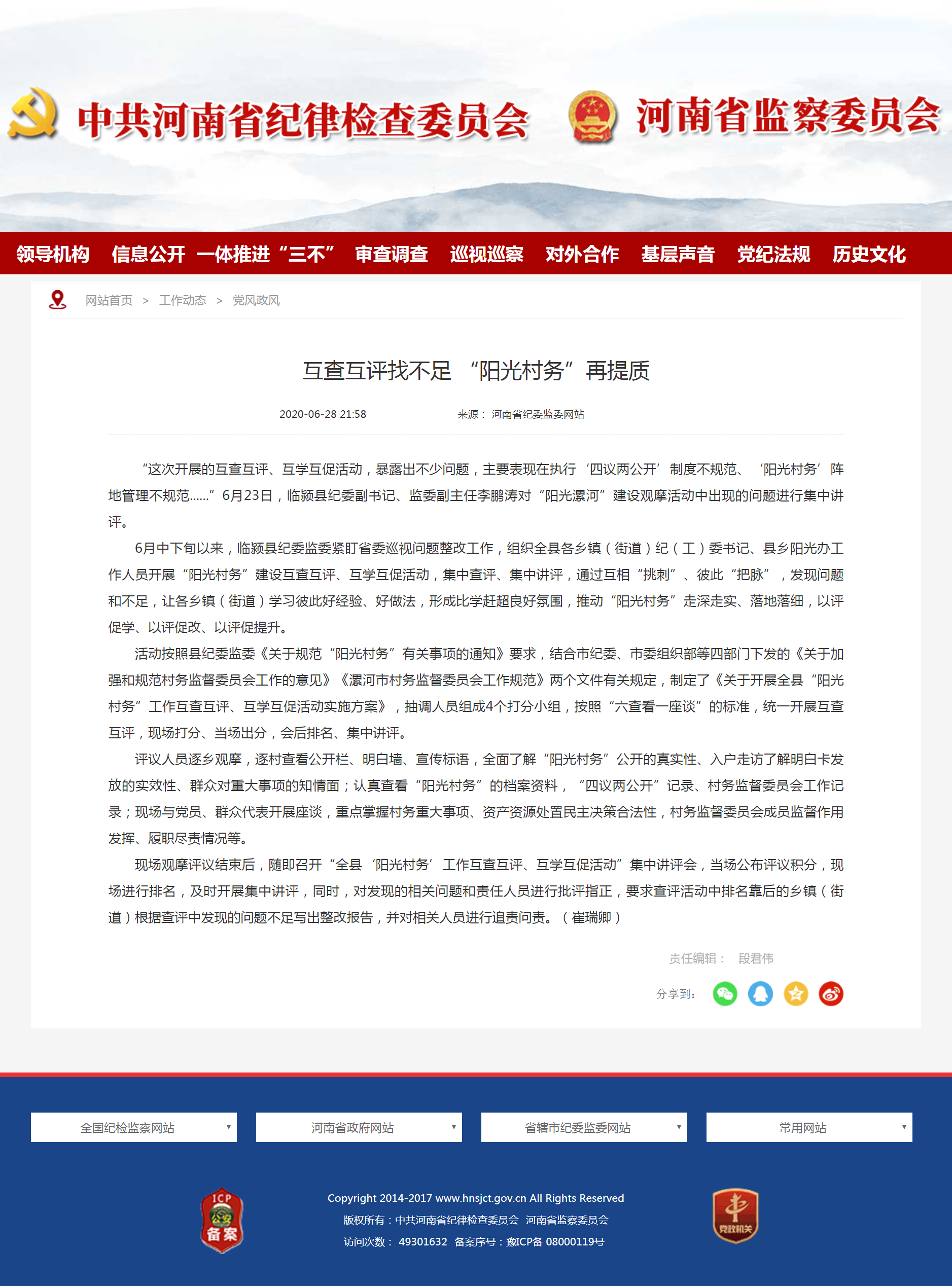 【河南省纪委监委网站】互查互评找不足 “阳光村务”再提质