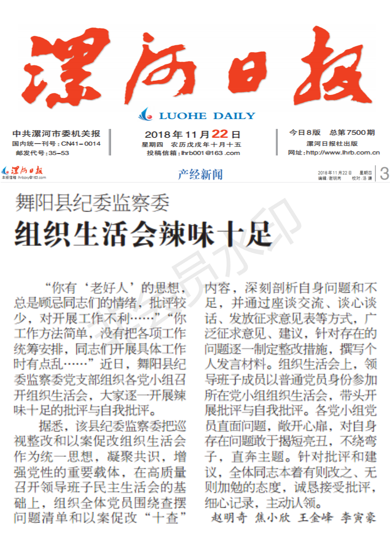 “你有‘老好人’的思想,总是顾忌同志们的情绪,批评较少,对开展工作不利……”“你工作方法简单,没有把各项工作统筹安排,同志们开展具体工作时有点乱……”近日,舞阳县纪委监察委党支部组织各党小组召开组织生活会,大家逐一开展辣味十足的批评与自我批评。