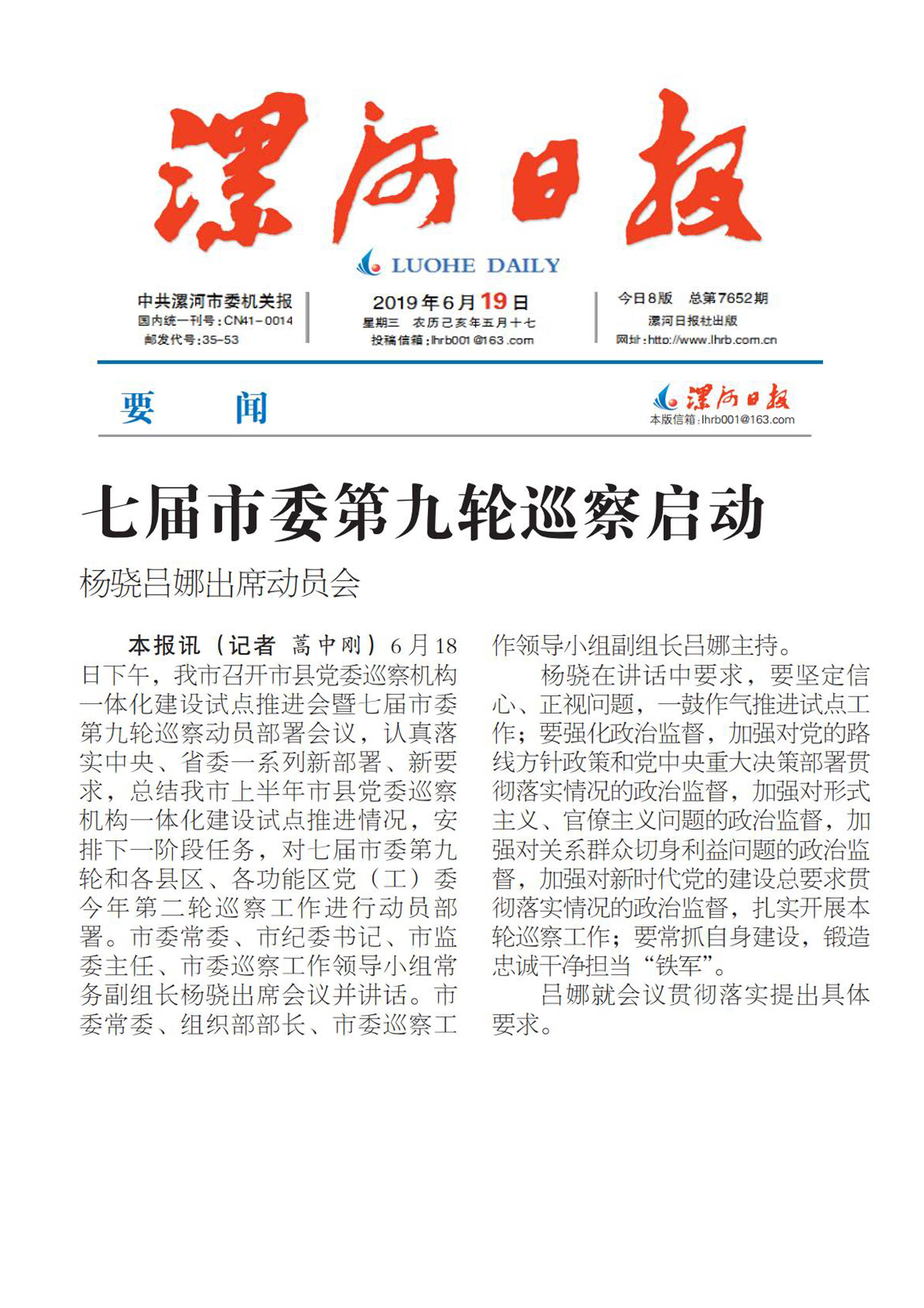 本报讯(记者 蒿中刚)6月18日下午,我市召开市县党委巡察机构一体化建设试点推进会暨七届市委第九轮巡察动员部署会议,认真落实中央、省委一系列新部署、新要求,总结我市上半年市县党委巡察机构一体化建设试点推进情况,安排下一阶段任务,对七届市委第九轮和各县区、各功能区党(工)委今年第二轮巡察工作进行动员部署。市委常委、市纪委书记、市监委主任、市委巡察工作领导小组常务副组长杨骁出席会议并讲话。市委常委、组织部部长、市委巡察工作领导小组副组长吕娜主持。 杨骁在讲话中要求,要坚定信心、正视问题,一鼓作气推进试点工作;要强化政治监督,加强对党的路线方针政策和党中央重大决策部署贯彻落实情况的政治监督,加强对形式主义、官僚主义问题的政治监督,加强对关系群众切身利益问题的政治监督,加强对新时代党的建设总要求贯彻落实情况的政治监督,扎实开展本轮巡察工作;要常抓自身建设,锻造忠诚干净担当“铁军”。 吕娜就会议贯彻落实提出具体要求。