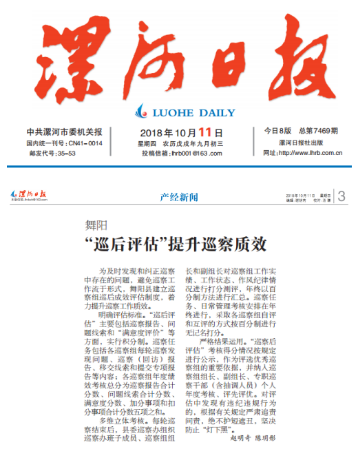 为及时发现和纠正巡察中存在的问题,避免巡察工作流于形式,舞阳县建立巡察组巡后成效评估制度,着力提升巡察工作质效。