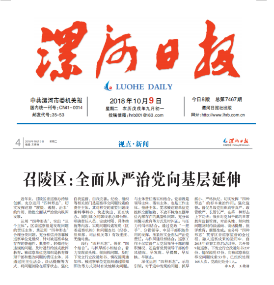 近年来,召陵区委巡察办持续创新,充分运用“四种形态”,切 实发挥巡察“震慑、遏制、治本”的作用,助推全面从严治党向纵深发展。