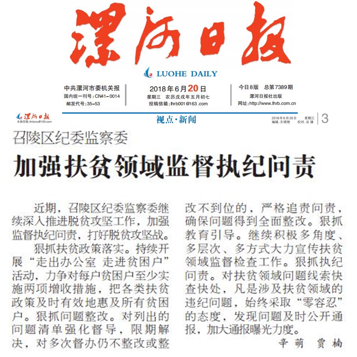 近期,召陵区纪委监察委继续深入推进脱贫攻坚工作,加强监督执纪问责,打好脱贫攻坚战。