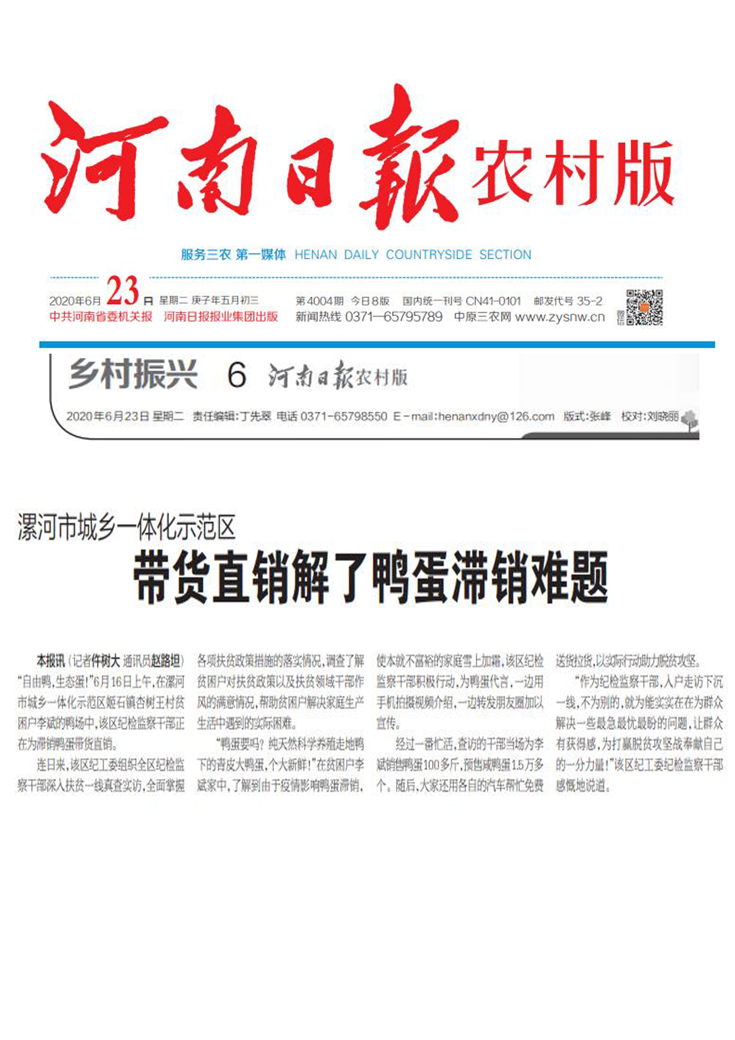 【河南日报农村版】带货直销解了鸭蛋滞销难题