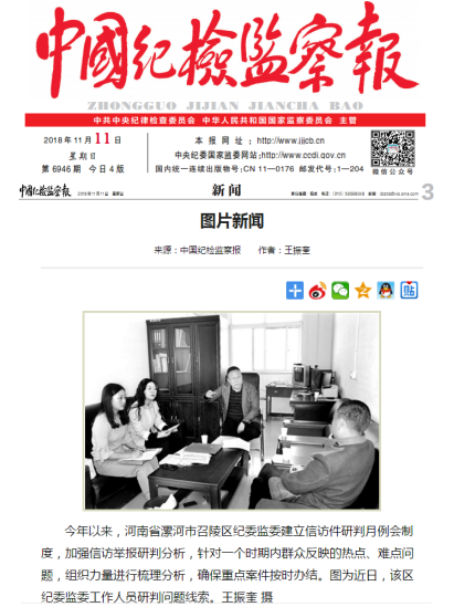 今年以来,河南省漯河市召陵区纪委监委建立信访件研判月例会制度,加强信访举报研判分析,针对一个时期内群众反映的热点、难点问题,组织力量进行梳理分析,确保重点案件按时办结。图为近日,该区纪委监委工作人员研判问题线索。王振奎 摄
