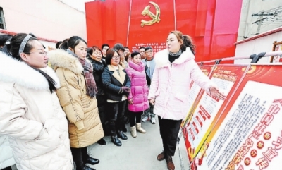 2月12日,河南省漯河市源汇区“纪法微课”讲师团成员在辖区五一路居委会向党员宣讲新修订的《中国共产党纪律处分条例》。尤亚辉摄/光明图片