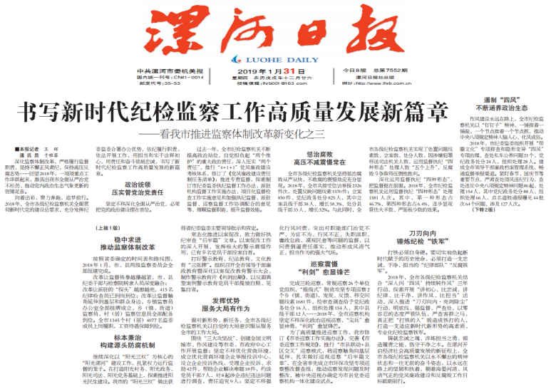 向着出彩,聚力奔跑,追梦前行。2018年,全市各级纪检监察机关全面贯彻新时代党的建设总要求,充分发挥纪委监委合署办公优势,依纪履行职责、依法开展工作,用担当和实干诠释初心,用责任和奋斗铭刻忠诚,书写了新时代纪检监察工作高质量发展的新篇章。