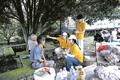 近日,江西旅游商贸职业学院学生来到江西省抚州市金溪县开展暑期“三下乡”社会实践,在竹桥村就古建保护和文旅发展等情况与当地村民交流。 新华社记者 刘金海 摄