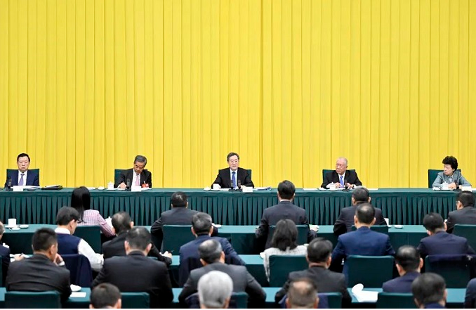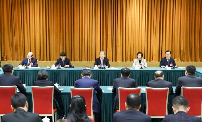 3月6日上午,中共中央政治局常委、全国人大常委会委员长赵乐际参加全国政协十四届三次会议致公党、侨联、对外友好界委员联组会。新华社记者 庞兴雷 摄