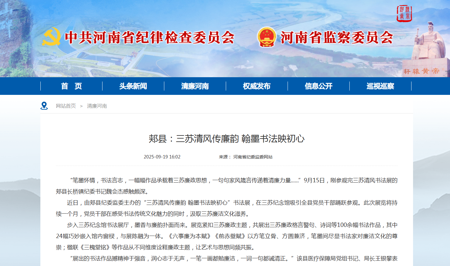 “笔墨怀情,书法言志,一幅幅作品承载着三苏廉政思想,一句句家风箴言传递着清廉力量......”9月15日,刚参观完三苏清风书法展的郏县长桥镇纪委书记魏会杰感触颇深。