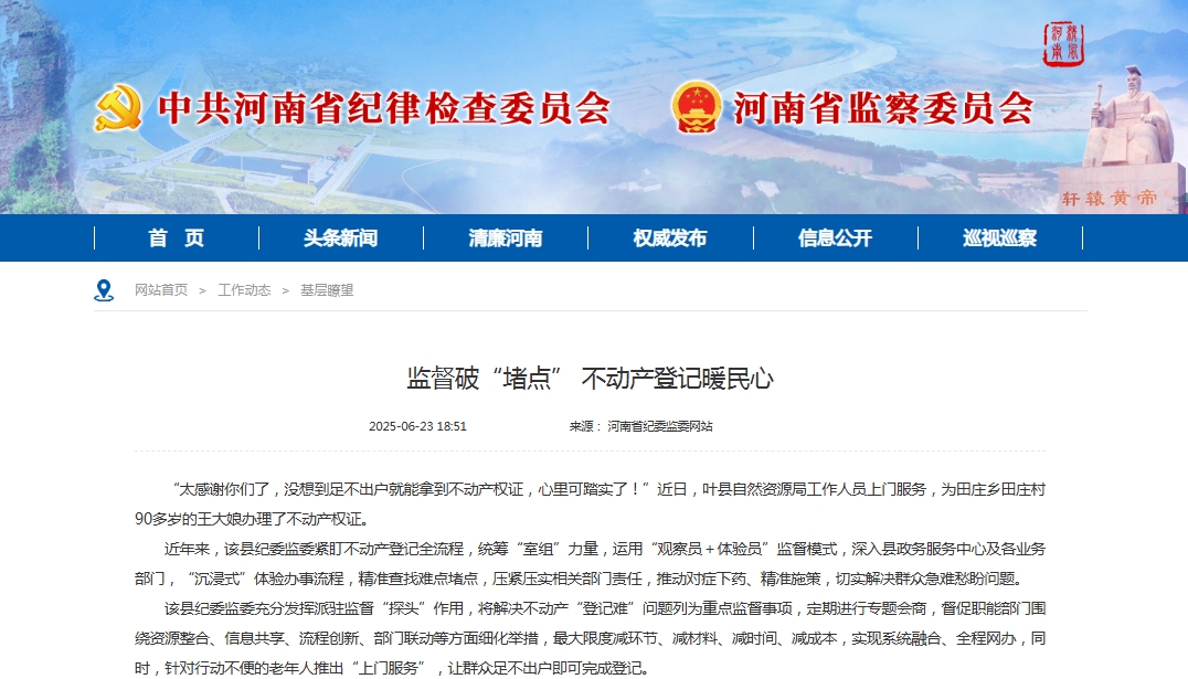 “不动产登记是实现群众‘安居梦’的重要保障。我们将持续探索创新监督方式,加大监督力度,推动职能部门解难点、破堵点,切实将监督效能转化为惠民实效,不断提升群众的获得感和满意度。”该县纪委监委相关负责人表示。(何仙)