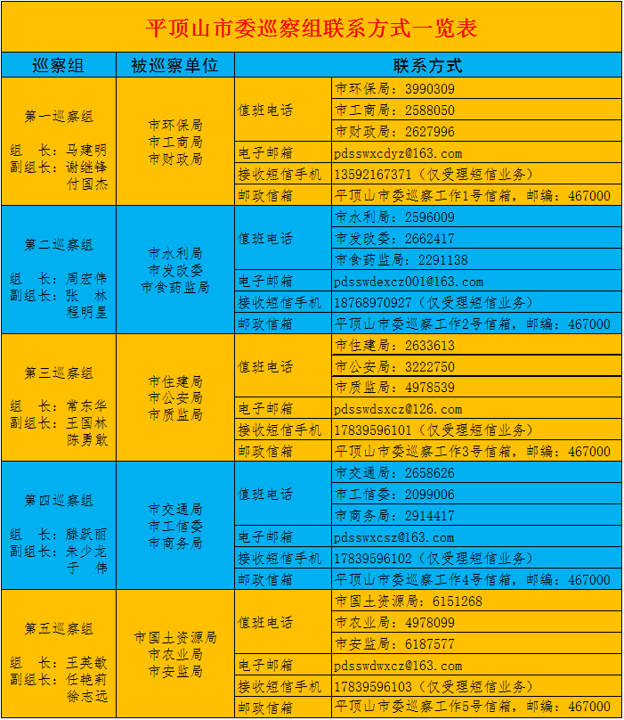 10月10日,平顶山市委派出5个巡察组,采取“一托三”的方式,对市环保局、市水利局、市住建局、市公安局、市交通局、市发改委、市工信委、市国土资源局、市农业局、市工商局、市商务局、市财政局、市安监局、市质监局、市食药监局等15个市直单位,就环境污染防治攻坚工作开展为期一个月的专项巡察,同时对相关单位、县(市、区)及功能区等进行延伸了解。