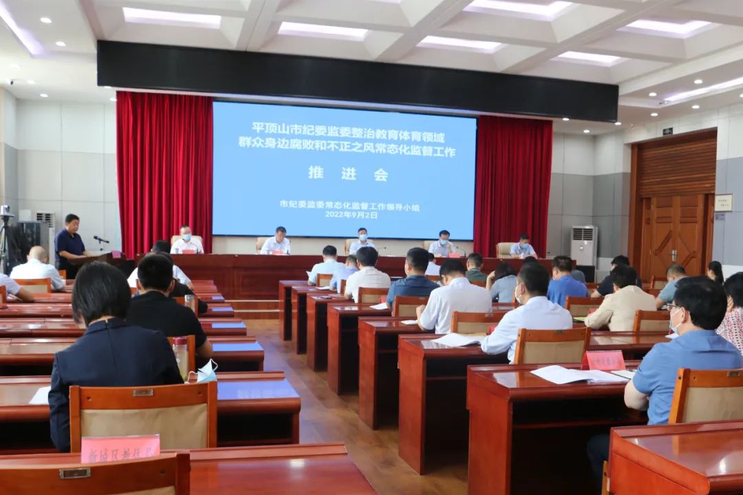 9月2日,全市整治教体领域群众身边腐败和不正之风常态化监督工作推进会在市教体局召开。市纪委副书记、市监委副主任李自军出席会议并讲话,省纪委监委驻平顶山市纪委监委纪检监察员薛满盈主持会议。会议听取了今年以来全市常态化监督、常态化整治工作开展情况汇报;通报了对各地常态化监督和整治工作阶段性考评情况;汝州市、叶县作常态化监督工作典型发言,宝丰县作常态化整治工作典型发言。