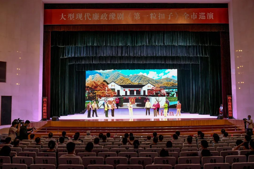 《第一粒扣子》由市纪委监委、市委宣传部、卫东区纪委监委和中国平煤神马豫剧团联合打造,共分为“风云突变、祸起萧墙、首次受贿、石破天惊、陷入围猎、生离死别、悔恨终生”7个场次,讲述了农民的儿子郝春成为领导干部后,因缺乏定力迷失方向而滑向腐败深渊的过程,从人性深度和艺术高度破解贪腐的深层原因,凸显扣好廉洁从政“第一粒扣子”的重要性,警示党员干部要永葆清正廉洁的政治本色,知敬畏、明底线,筑牢不敢腐、不能腐、不想腐的堤坝。、
