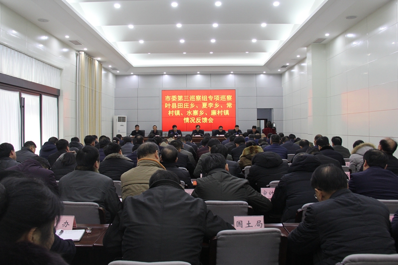 1月9日下午,九届市委第四轮巡察第三巡察组专项巡察叶县田庄乡、夏李乡、常村镇、水寨乡、廉村镇情况反馈会在叶县召开。市委常委、市纪委书记、市监察委员会主任、市委巡察工作领导小组组长李建民参加会议并讲话。
