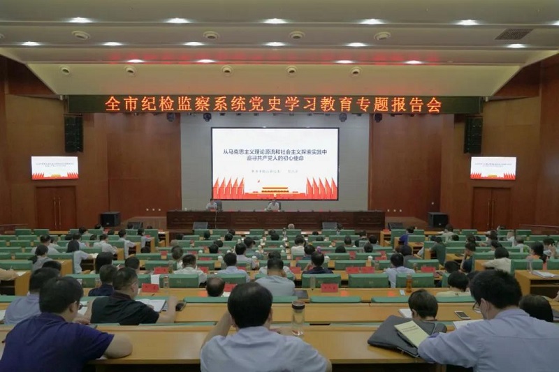 会上,市纪委监委办公室主任张志华以《从马克思主义理论源流和社会主义探索实践中追寻共产党人的初心使命》为题,从历史和现实相贯通、国内与国际相关联、理论与实践相结合的宽广视野,通过对国际共产主义运动170年的发展史、中国共产党100年的奋斗史、中国特色社会主义40多年的实践史进行梳理总结和回顾反思,全方位阐述了“为什么中国先进知识分子选择了马克思主义”“为什么说马克思主义没有过时”“为什么说中国特色社会主义是社会主义而不是其他的什么主义”等三个问题,对在党史学习教育中更好地理解和把握中国共产党为什么能、马克思主义为什么行、中国特色社会主义为什么好,具有很强的指导性和现实意义。