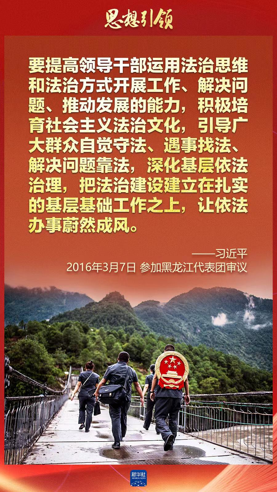 党的十八大以来,“法治”是习近平总书记在全国两会上与代表委员们交流讨论的高频词。从运用法治思维到维护法治环境,从站稳人民立场到抓住领导干部这一“关键少数”……总书记以深远的战略思维、鲜明的政治导向、强烈的历史担当、真挚的为民情怀,为建设法治中国指明了前进方向,也不断丰富和发展着习近平法治思想的深刻内涵。