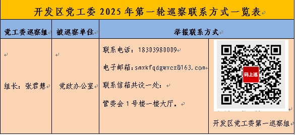 巡察期间,党工委巡察组开通联系电话、电子信箱、联系信箱和监督平台“码上巡”。(王媛 张辉)