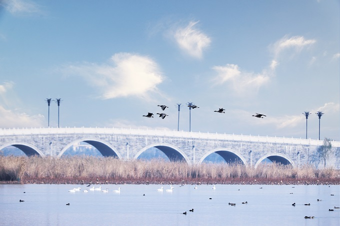 小雪时节,在被誉为中国最大的环城湖——周口市淮阳区龙湖国家湿地公园内,成群的候鸟如约而至,它们或翩跹起舞,或静立浅滩,为这片宁静的湿地注入了灵动的气息。(周口市淮阳区纪委监委供 赵增翔 摄)