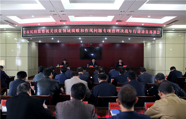 4月3日,全市纪检监察机关扶贫领域腐败和作风问题专项治理决战年行动动员部署会举行。市委常委、市纪委书记、市监委主任栗金强出席会议并讲话。