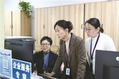 河南省平顶山市湛河区纪委监委聚焦涉企政务审批等重点环节,依托小微权力“监督一点通”等平台,精准发现不正之风和腐败问题。图为近日,该区纪检监察干部在区政务服务中心涉企服务窗口了解相关情况。杨冰洁 摄