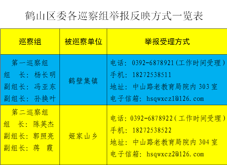 巡察期间,各巡察组均开通值班电话、接收短信手机、电子邮箱,公布举报地址。(鹤壁市纪委)