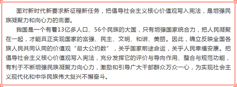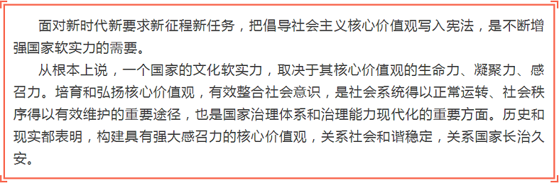 十三届全国人大一次会议通过的宪法修正案,将宪法第二十四条第二款中“国家提倡爱祖国、爱人民、爱劳动、爱科学、爱社会主义的公德”,修改为“国家倡导社会主义核心价值观,提倡爱祖国、爱人民、爱劳动、爱科学、爱社会主义的公德”。为什么要将“国家倡导社会主义核心价值观”写入宪法?有什么重大意义?小栋今天带你一起好好学习。